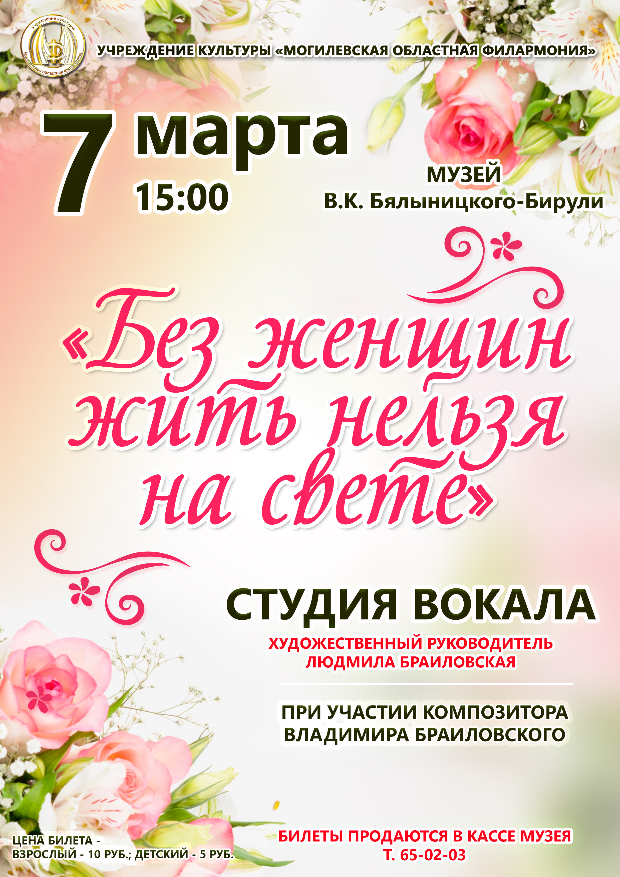 7 марта в музее В.К.Бялыницкого-Бирули состоялся концерт студии вокала Могилевской областной филармонии «Без женщин жить нельзя на свете»