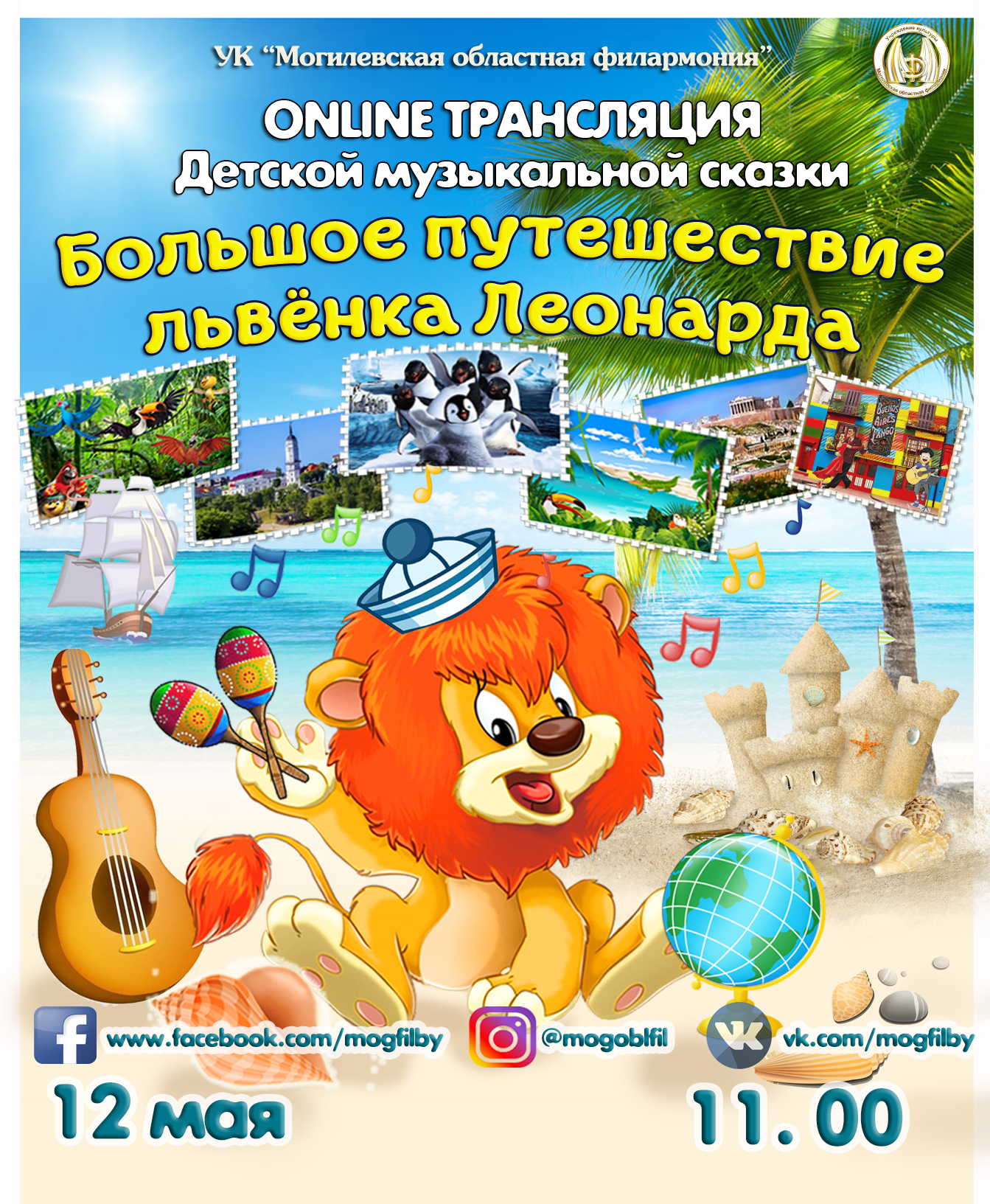 12 МАЯ в 11:00 пройдет онлайн трансляция увлекательной музыкальной сказки «Большое путешествие львенка Леонарда».