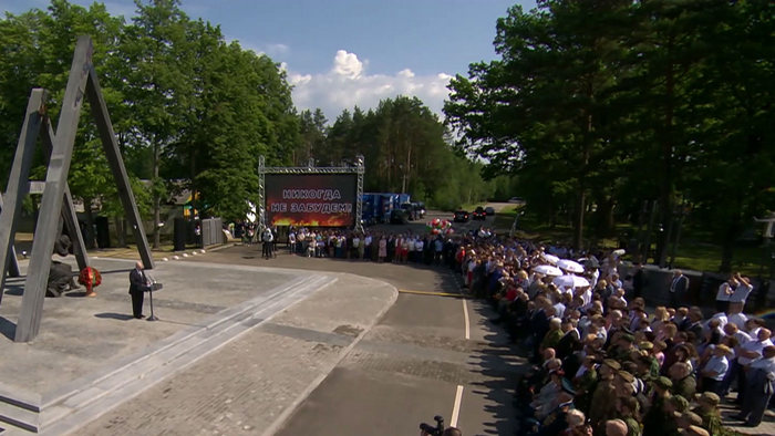 Церемония открытия мемориального комплекса памяти сожженных деревень Могилевской области в деревне Борки Кировского района с участием Главы государства