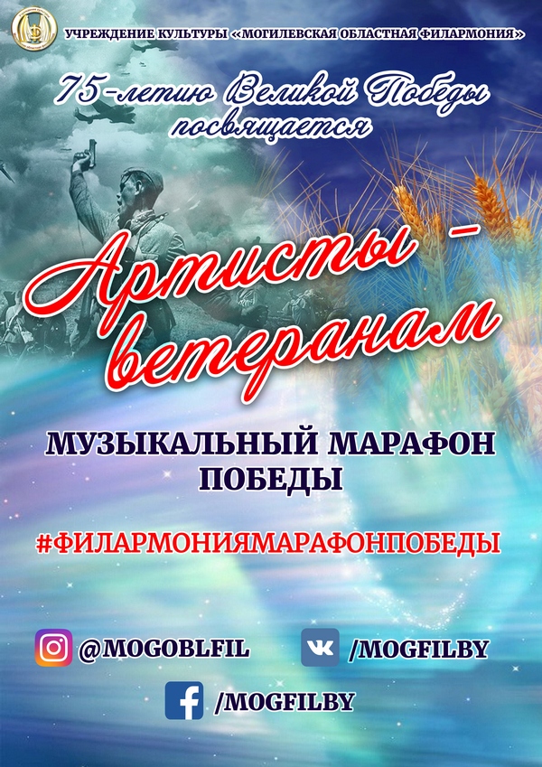 В преддверие праздника – Дня Победы,в честь подвига воинов-победителей артисты Могилевской областной филармонии начинают победный марафон, в котором исполнят песни военных лет и военной тематики, выразят слова благодарности.