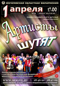 Обладатель медали Франциска Скорины, ведущий мастер сцены, лауреат международных конкурсов Павел Усович и его друзья представляют творческий проект "Артисты Шутят". Юмористическая программа с участием артистов "Могилевской областной филармонии", "Могилевского областного драматического театра" и "Могилевского областного театра кукол".