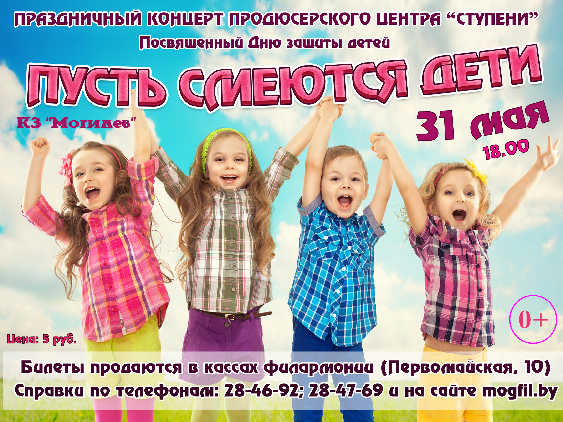 Праздничный концерт продюсерского центра "Ступени" "Пусть смеются дети", посвященный Дню защиты детей, прошел 31 мая в концертном зале "Могилев".
