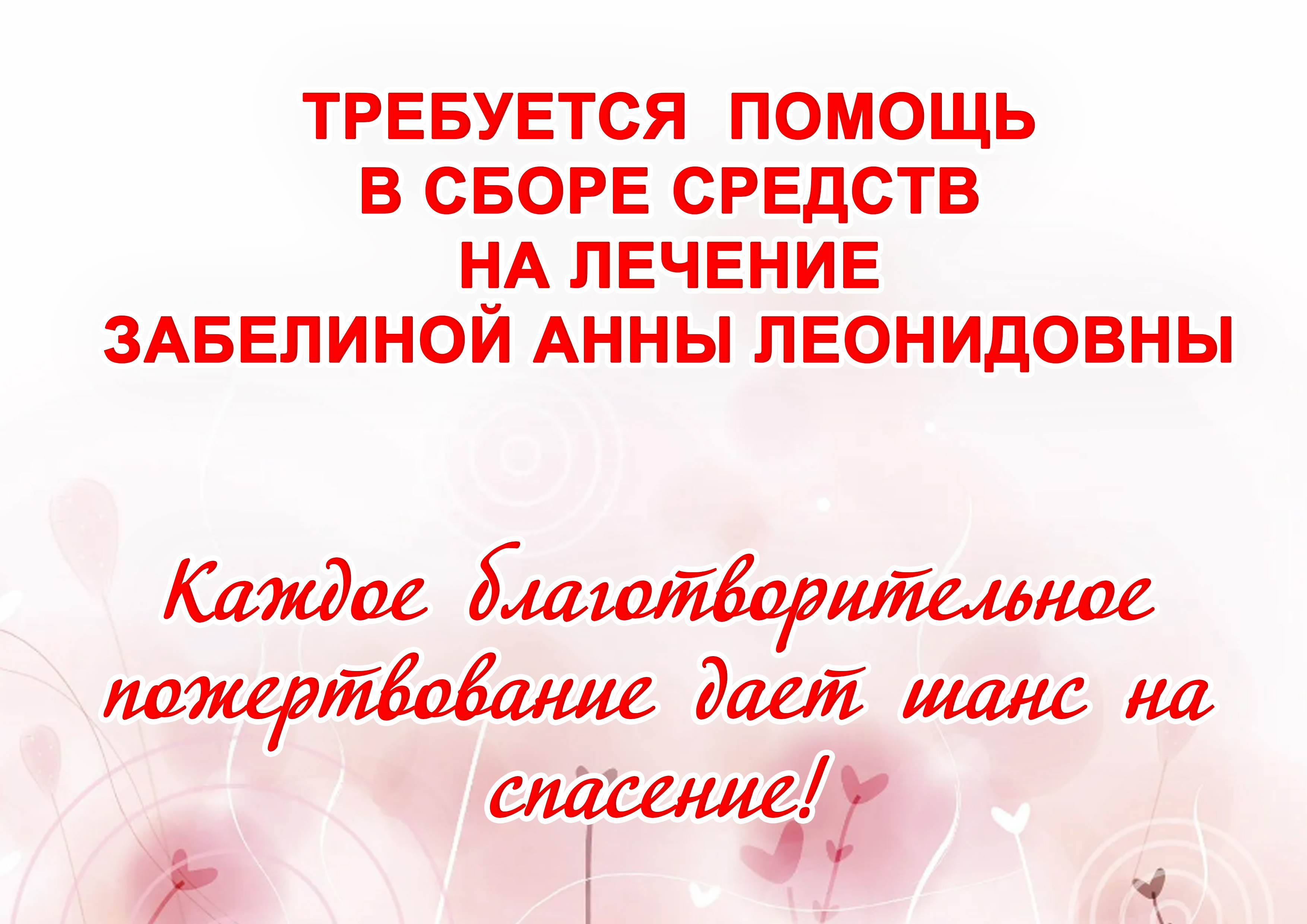Назначение платежа: на лечение Забелиной Анны Леонидовны