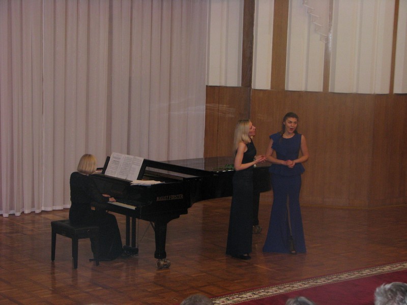 Все это действо сопровождалось аккомпанементом концертмейстера студии вокала Натальи Пахомовой, которая еще взяла на себя и роль ведущей концерта, интересно знакомя слушателей с историей создания некоторых произведений.